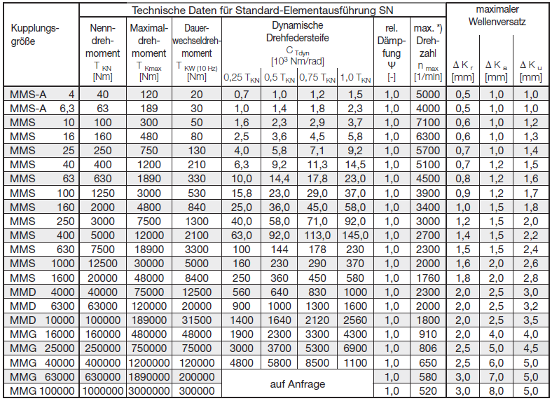 *) Макс. скорости относятся к стандартным муфтам из серого чугуна; более высокие скорости вращения могут быть получены с другими материалами.